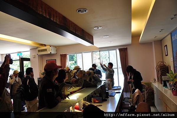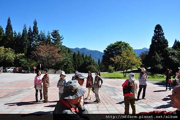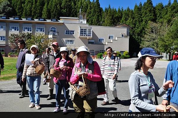 121019一早晴空萬里,臺大山地農場各組同仁及近30位志工老師齊聚教育展示中心,聆聽解說員的採果簡報分享後,便一起邁步前往蘋果園,實際操作、演練整個採果的流程。