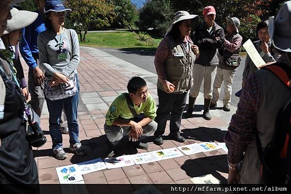 解說員芭樂準備帶大家循著動線前往蘋果園。