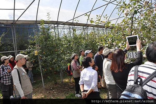 除了讓大家熟悉前往蘋果園的動線外,蘋果達人“巴撒”詳盡的對大家解說採果時的注意事項,例如梯子必須注意三支腳都固定於地面,確定穩固後,再開始使用;採摘前,先觀察蘋果底部是否轉色成熟,再決定是否採下這顆蘋果;如果不小心碰掉了蘋果,或者採下來後才後悔,都是必須自己負責的哦!因此,當您在選擇自己的蘋果時,每一顆都要非常專心致意,然後再滿足的把它們帶回家吧!