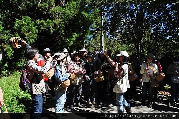 此次蘋芬秋色活動較前四年不同的地方是,採果前會發給大家一只標有顏色的採果籃,採果結束後,回到出發的廣場後,再換回農場經營組同仁特別設計的不織布提袋,以減少垃圾量及增加資源的重覆使用。