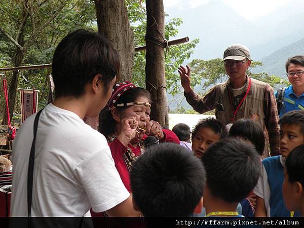 林主任介紹賽德克族的拉拜阿嬤給小朋友們認識。