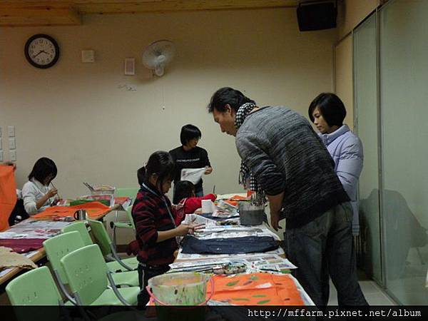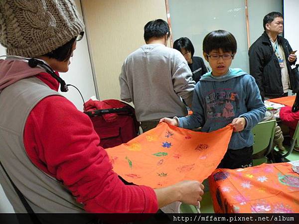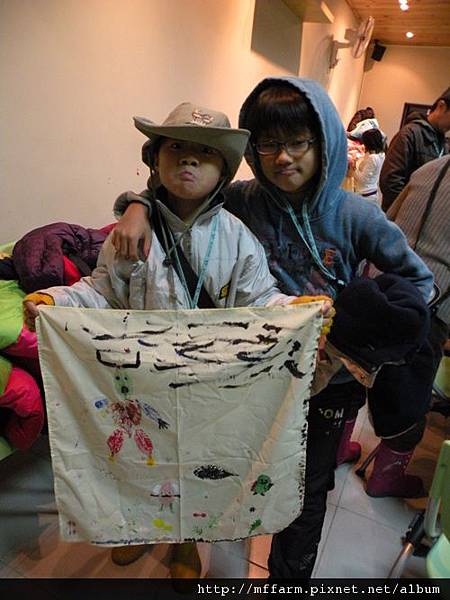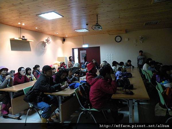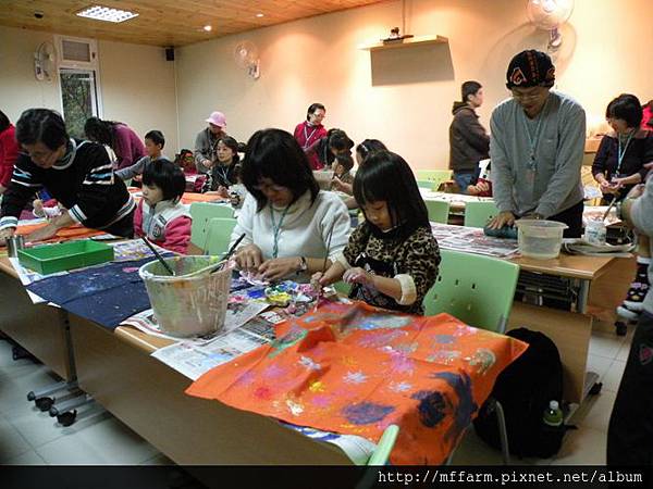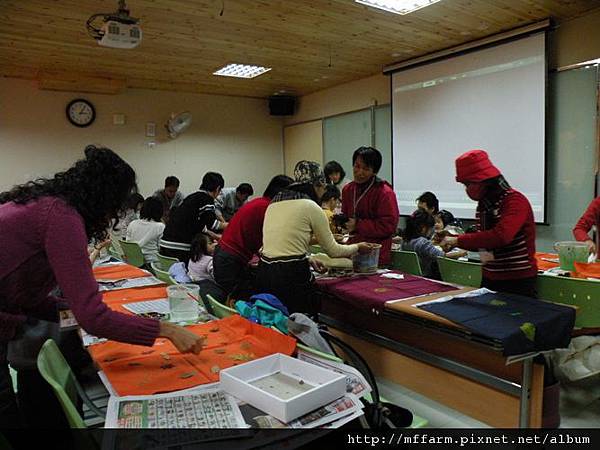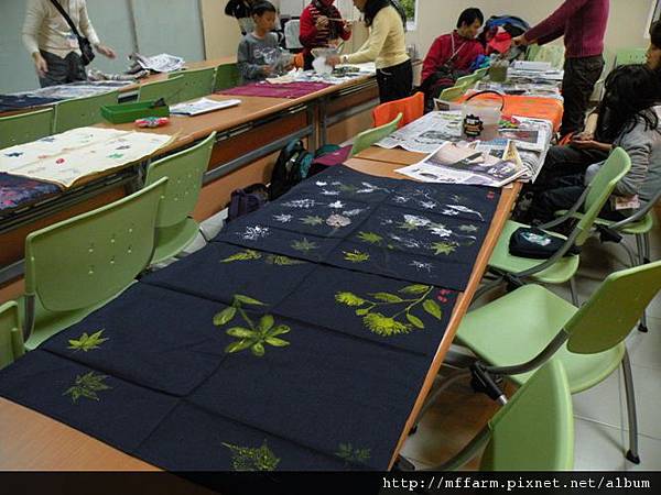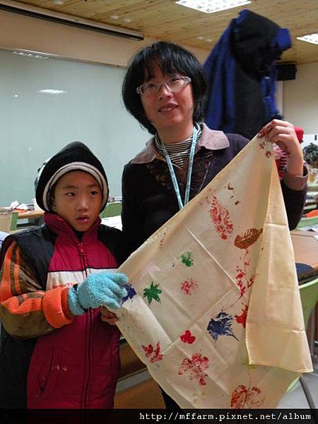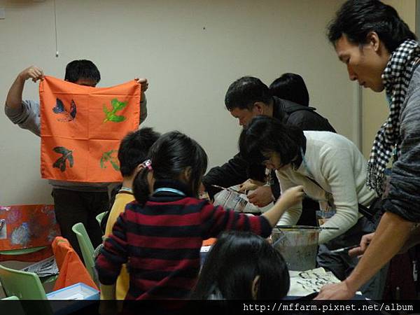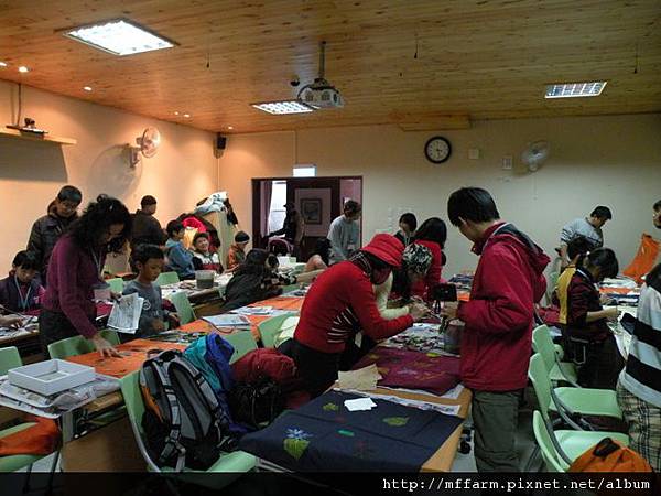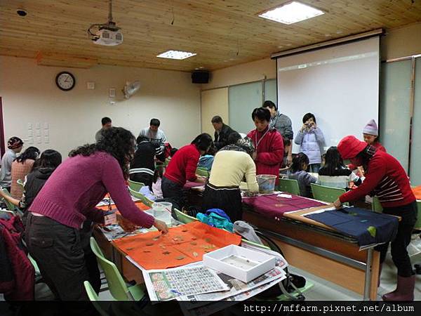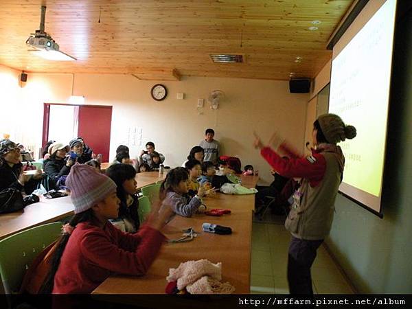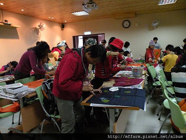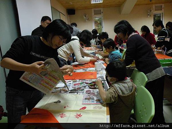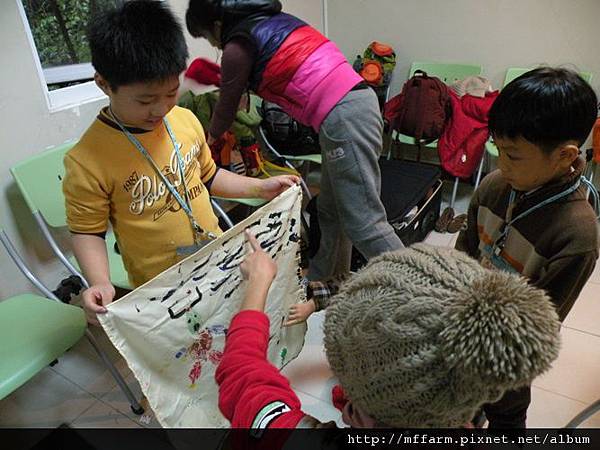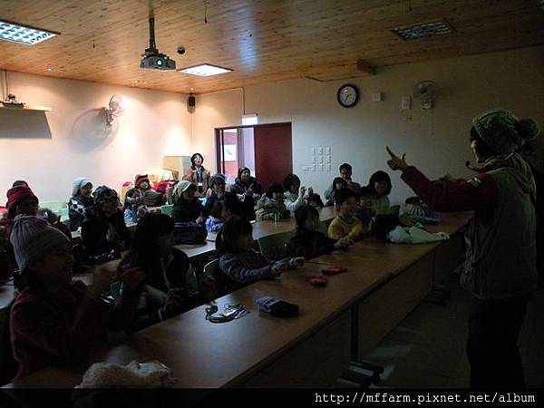 在101.12.09-10這兩天,有40多位自學家庭的爸爸媽媽和小朋友們,來到臺大山地實驗農場進行兩天一夜的體驗之旅,首先,先讓大家一起在會議室裡集合說明行程,並由解說員愛玉帶領大小朋友玩手指頭遊戲,暖暖手指頭後,在第一天下午就先進行了「彩繪大自然」的活動。雖然因為下雨而無法先行撿拾葉子,但解說員們為了預防這樣的狀況,事先已有準備好的葉子供大家適量取用。