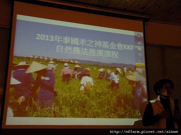 推廣微生物菌實做課程的KKF(泰國米之神基金會,1989年成立)2013年巡迴台灣的工作坊第一站就來到了梅峰!經過了二十多年研究及參考各國農法,在泰國米之神給予的靈感之下,希望能夠實際幫助到農民脫貧、找出適合土地的種子、避免慣行農法昂貴農藥及化學肥料的債務的泰國米之神基金會創辦人Daycha老師秉持便宜、方便、在地等原則,找出了利用本來就存在我們生活環境裡的各式微生物菌,藉由糖蜜、米糠提供它們食物,竹葉提供它們居所,讓任何人只要透過實做,都可以輕易的製作出微生物菌,使用在農作的栽培上,進而減少化學品及農藥肥料的使用,讓撫育我們的土地能夠逐漸恢復往昔的豐饒,達到人與萬物之間的和諧。