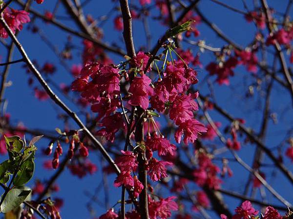 桃李梅櫻綻放讓冬天增添了些許色彩,盛開的櫻花吸引了各種鳥類來覓食,冠羽畫眉輕盈的在枝頭跳躍。雖然此時少了春夏豐厚的果實,但紅橘黃白的花卉依然把梅峰妝點的繽紛。