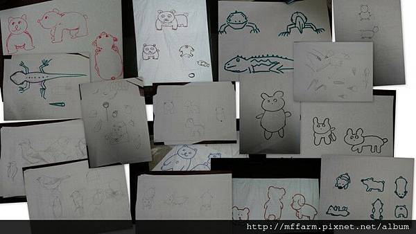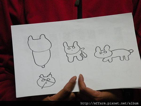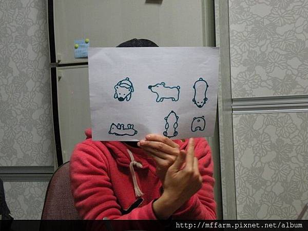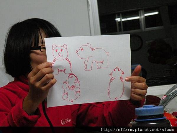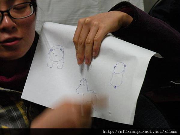 在場的同仁試著畫出熊的正面、側面和俯視圖,每個人的風格都不盡相同。