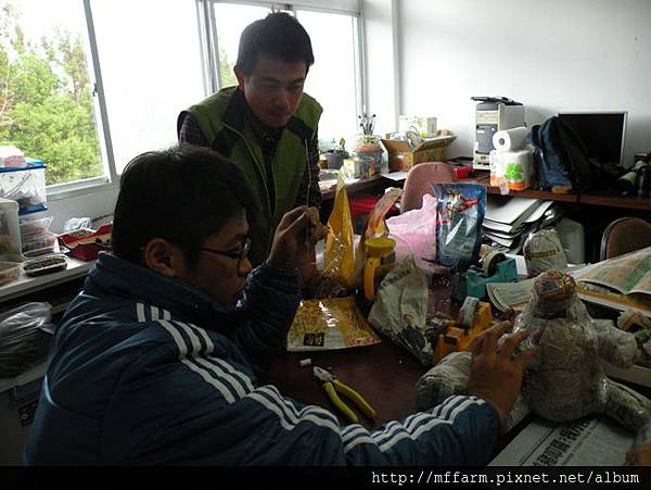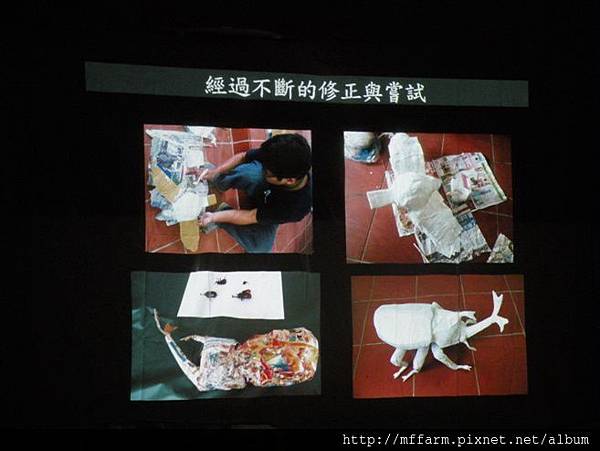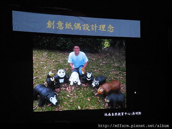 花蓮池南自然中心的環境教育教師,也曾擔任梅峰農場解說員的吳明勳先生,在2月份蒞場與同仁們分享其製作創意紙偶的做法與過程。完成的創意紙偶將成為臺大山地實驗農場環境教育課程的教具,而它們的第一項任務則是擔任2013年梅峰桃花緣─春之饗宴活動蘭花展示室中的中海拔原生種生物的展示成品。