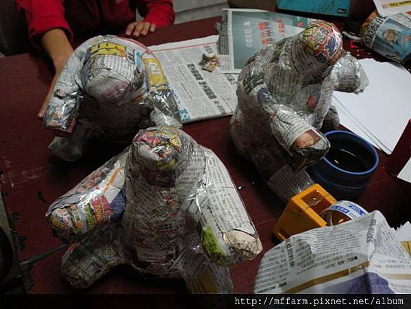 完成後,利用刷子沾取白膠抹在廚房餐巾紙上黏貼至創意紙偶外表上。要黏完兩層,乾燥後,就可以進行最後的壓克力上色工程。乾燥後,一個屬於台灣本土特色的教具就完成啦!接下來,就與大家分享吳明勳先生指導同仁們製作創意紙偶的過程記錄,也許你在家裡也可以試著利用廢棄不要的報紙,試著做做看哦!