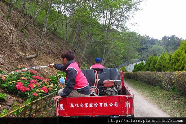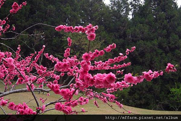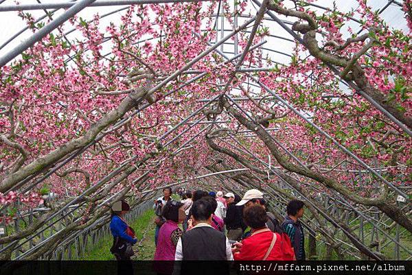 來到臺大山地實驗農場,一入眼就是花團錦簇的蟠桃。