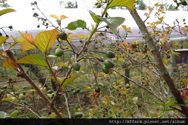 快抵達水蜜桃園時,路旁成排結了小果的樹是暖地櫻桃!