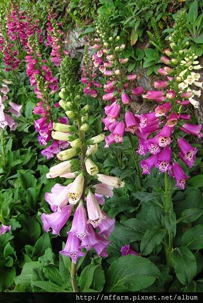 毛地黃開花成串,醒目的斑點,是指引昆蟲的蜜源標誌。