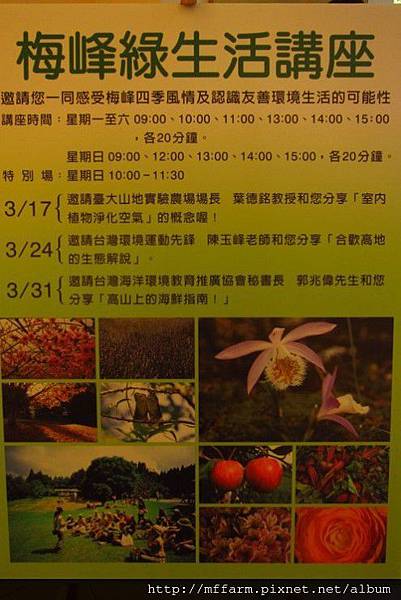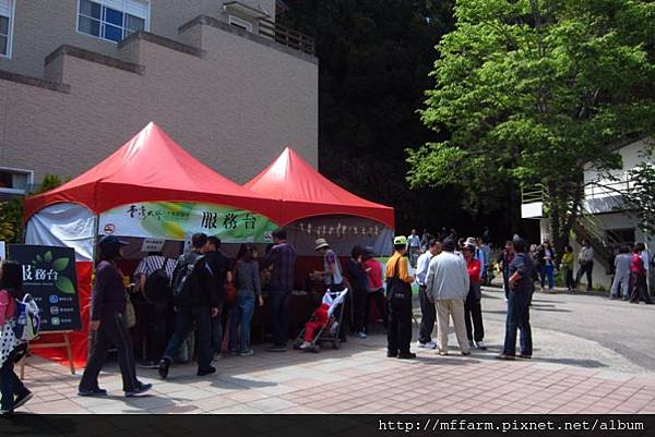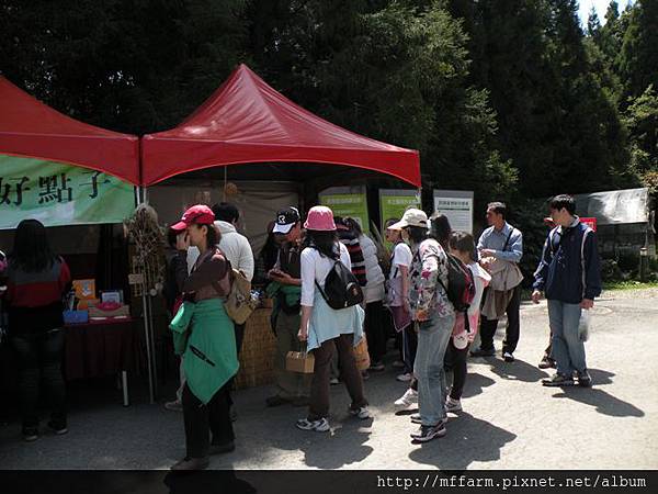 今天有著非常棒的好天氣,一大早,老鷹就在高空不斷地叫喚著,每年三月時經常可以見到的雙環鳳蝶也頻頻穿梭飛舞花叢間,鳥語蝶舞,好不熱鬧。而來往的遊客們也或談笑,或散步、或閒聊地在臺大山地實驗農場精心布置的各式展示區裡享受著這個美好的週六。希望,2013梅峰春之饗宴將帶您最愉快的假日休閒時光!