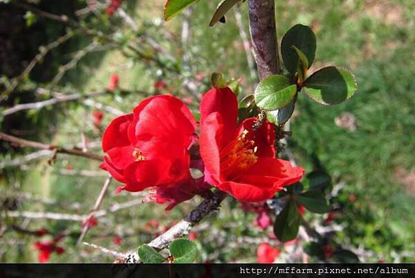 貼梗海棠有點像塑膠花,不過它卻是貨真價實的真花哦!