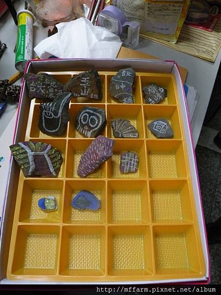 而石頭彩繪,則是利用梅峰當地特產的板岩,透過壓克力顏料的創作,賦予石頭全新的風貌,並希望讓孩子們利用天成的美感與創意,盡情揮灑。生活中,過於精緻的現成玩具已經扼殺了孩子們許多的想像力及創意,來到兒童綠世界,重拾擱置許久的天賦,和我們一起與心中的那個孩子共舞吧!