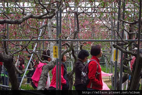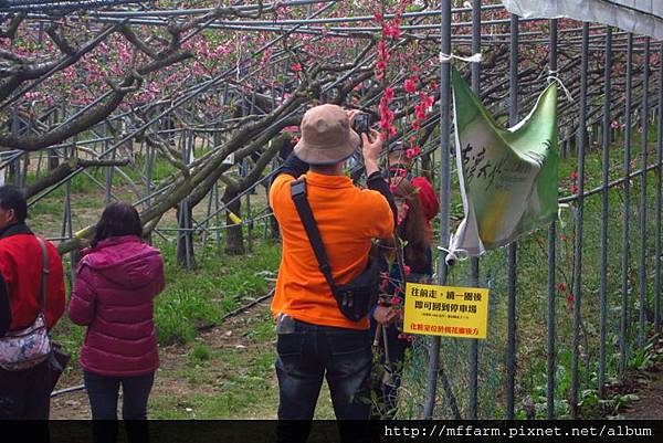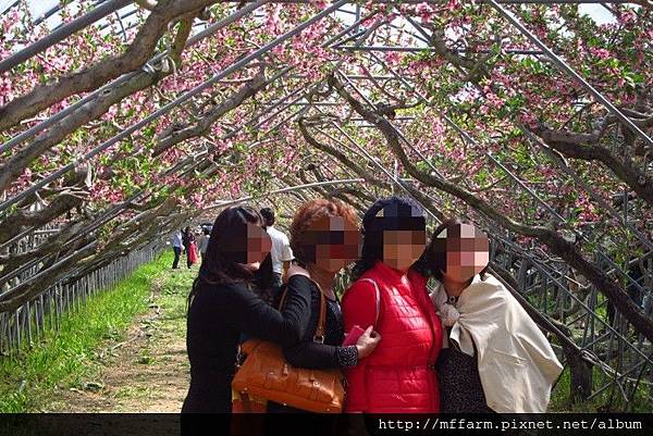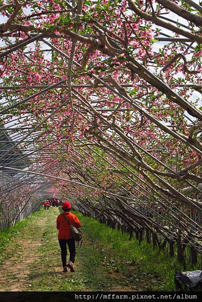 水蜜桃花廊道,呈現著粉紅與新綠。