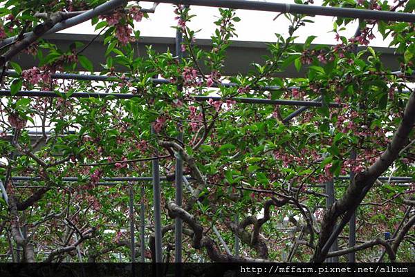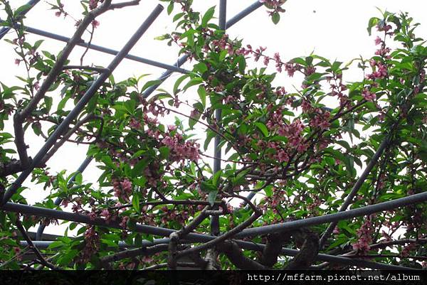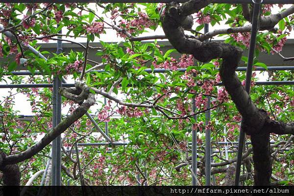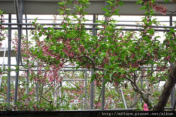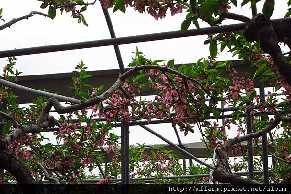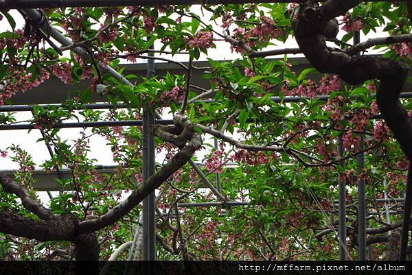 水蜜桃花廊粉綠相伴,讓人開始期待起七、八月水蜜桃成熟的時節呢!