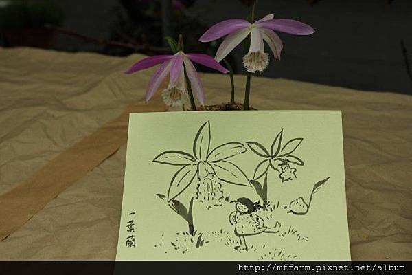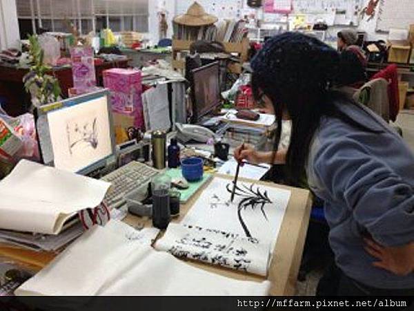蘭花展示室的站長活動前正在準備揮毫創作,作品就是您將在蘭花展示室裡見到的哦!