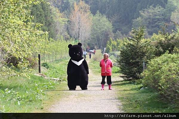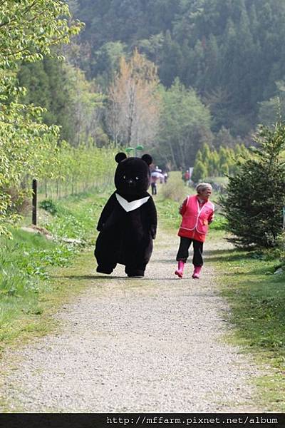 賽德克族阿嬤與台灣黑熊漫步臺大山地實驗農場。大家要記得多多關心台灣黑熊哦!歡迎上黑熊保育協會http://www.taiwanbear.org.tw/多留意關於台灣黑熊的保育訊息哦!
