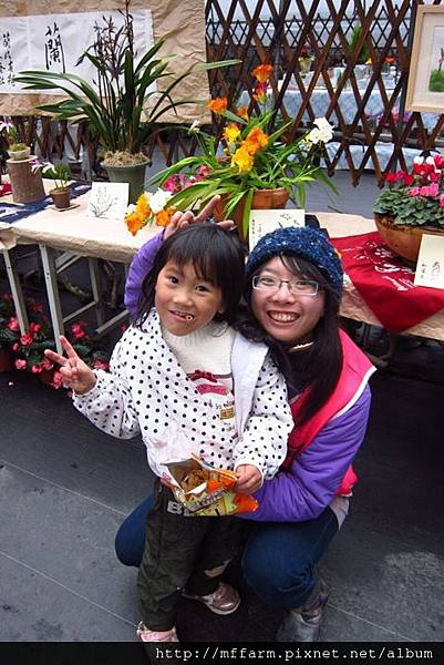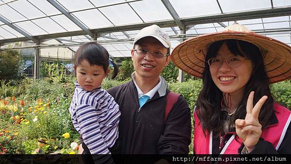 前同事顏彤大哥與小女兒和溫帶花卉區站長之一的聖琳合照。