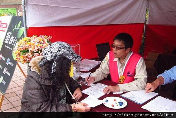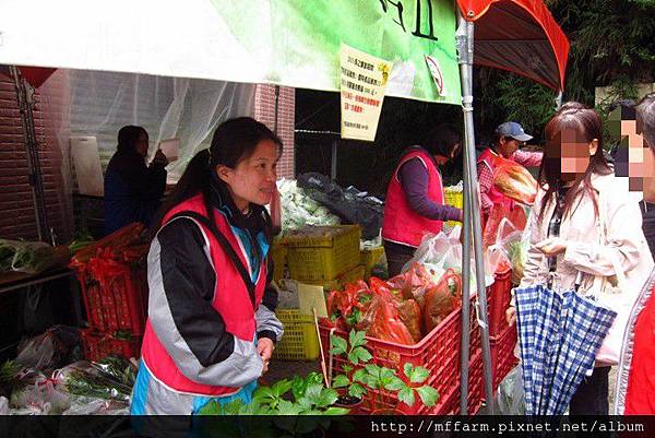 農產品展售一區的協助志工。