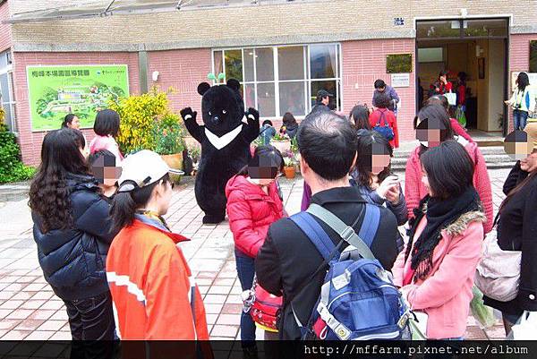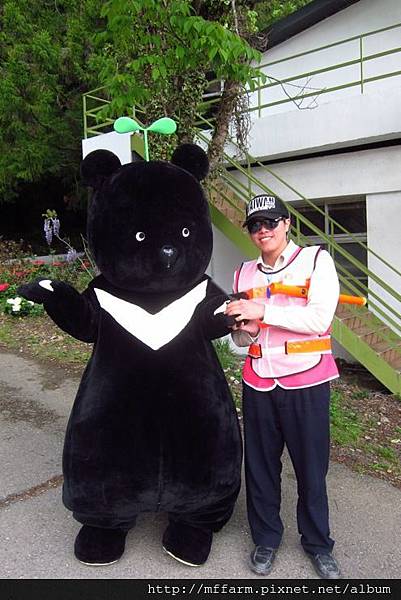 大家都忙著和台灣黑熊合照。