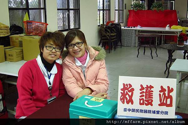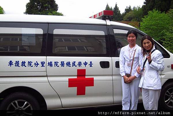 臺中榮民醫院埔里分院的救護車與護士小姐。