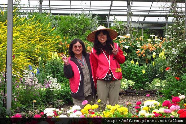 溫帶花卉區站長聖琳與志工林杏大姊。