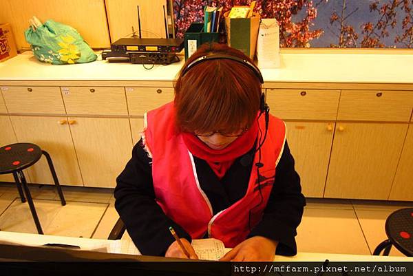 服務台優美女聲志工李秀霞老師。