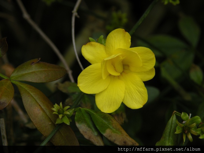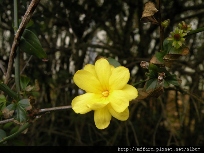 圖說:小巧的迎春花,花瓣層疊,似有表情。(攝於梅峰)