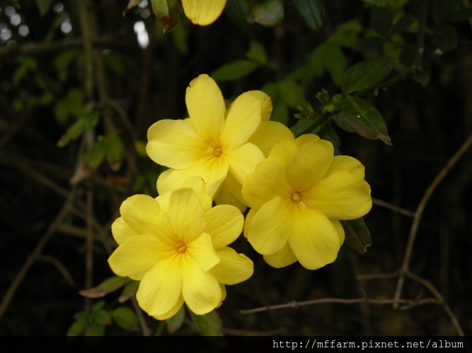 盛開而姿態頗富詩意的迎春花。(攝於梅峰)
