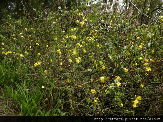 圖說:秋冬時,葉子被低溫染的黃黃綠綠的迎春花植株。(攝於梅峰)
