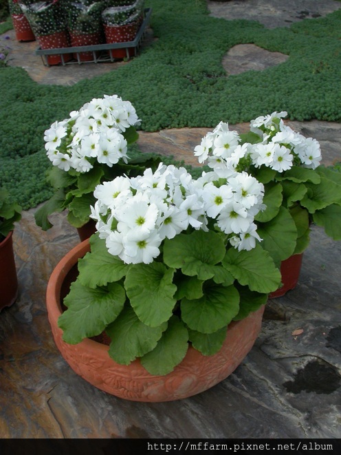 另一種園藝品種的報春花,被稱為中國報春花,纖細俏麗。(攝於花博未來館)