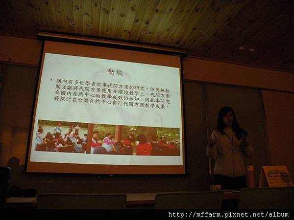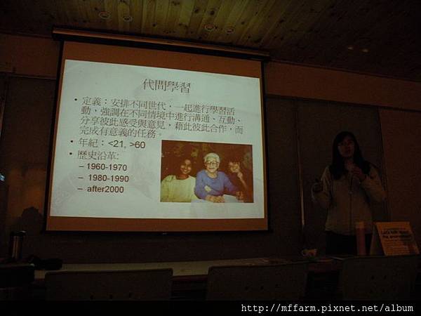 積極發展環境教育的臺大山地實驗農場,在2013年4月12日上午9點至11點邀請台中教育大學劉思岑老師為同仁們分享代間教育的演講。讓以銀髮族及親子共遊為大宗客群的臺大山地實驗農場工作同仁們,透過演講獲得許多新的想法及觸發,並能夠應用到營隊活動中讓學員獲致更美好的遊憩體驗。所謂的「代間學習」,原來是指小於21歲與大於60歲之間的學習組合才算符合。而小於21歲與大於60歲的人們,小時候的玩具、和生活有關的物品、生活經驗等都非常不同,透過分享,不但產生了交集、關聯,也能經由溝通讓彼此更理解。而且經過代間學習所激盪的火花也非常有趣呢!若有興趣,也可以在自己的家裡開始試著進行哦!