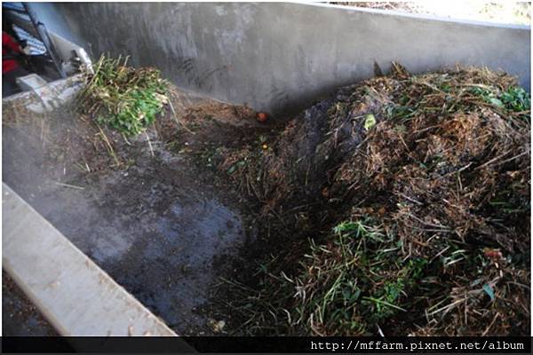 從圖中可以看出臨海農場堆肥場的操作環境,由於是露天堆置,所以在雨季時行路難,光是看圖似乎就能聞到印象中傳統堆肥場的味道。實在很難想像農場有一座這樣的堆肥場。