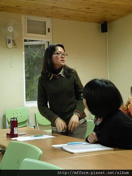 教研組研究助理趙俐雅小姐在演講過程中站起來與同仁們分享洋麻的吃法。