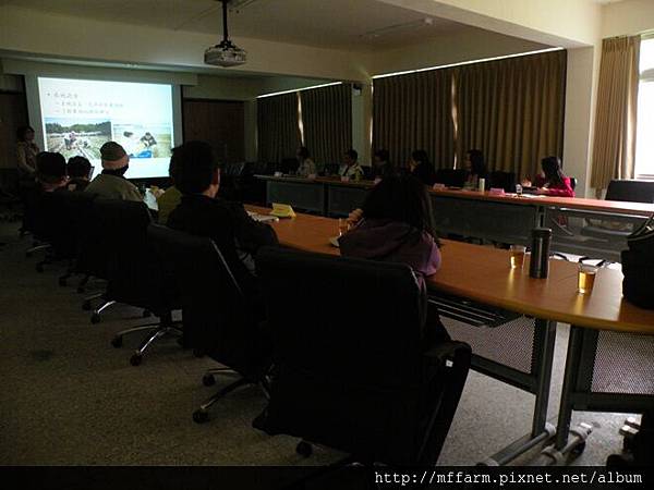此次簡報由臺大山地實驗農場教研組環教人員陳俐璇小姐負責報告,委員及農場的主管、同仁們都聚精會神的聆聽著。