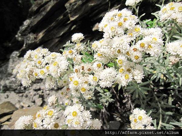 白花香青也叫玉山抱莖籟簫,是菊科植物,乍看之下有點像白色的乾燥花。