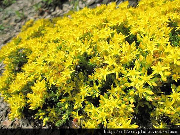 玉山佛甲草黃色花朵及肉質肥厚的葉子,非常容易辨識。