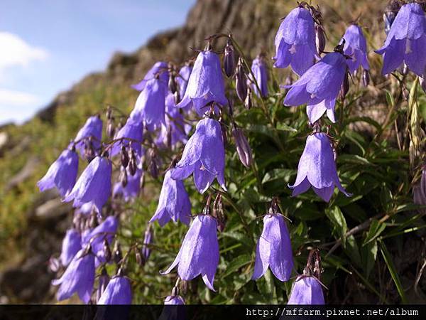 高山沙參7月開花,紫色鐘形的花冠如同風鈴般搖曳風中,十分可愛。