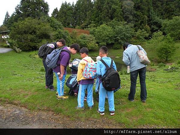 等待中,泰安國小的小朋友們到黑水塘畔進行觀察。