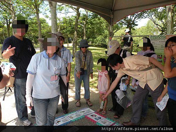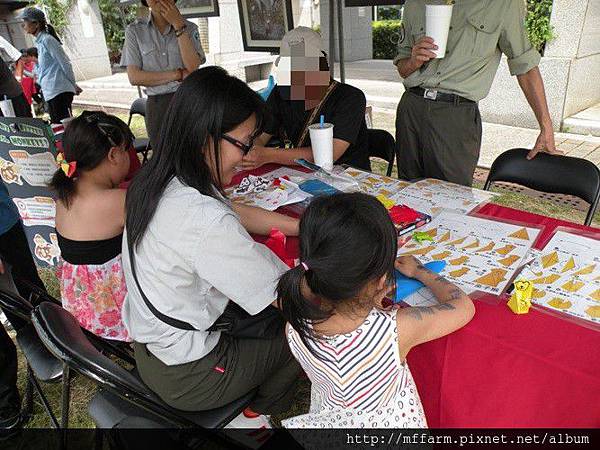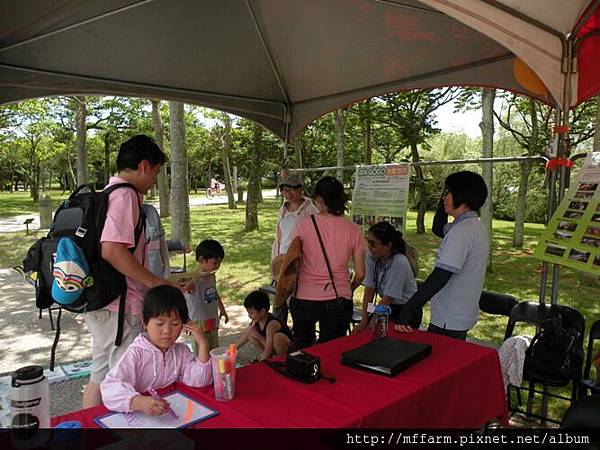 艷陽高照的活動當天,一大早台中都會公園裡就人聲鼎沸,熱鬧滾滾。許多家長與小朋友們正在進行寫生比賽。而簽約儀式結束後,十點時闖關活動隨即展開,主辦單位準備了七個闖關攤位,分別為1. 愛與希望的森林~八仙山自然教育中心2. 勇闖奧萬大~奧萬大自然教育中心3. 動手愛臺灣~彰化縣綠色環境學習營地4. 如果我是猴子~玉山國家公園5. i35-愛生物~特有生物研究保育中心6. 翩翩紫蝶~臺中都會公園7. 食物里程大富翁~臺大山地實驗農場,而只要收集到四個闖關活動的章,就能換取一份紀念品。