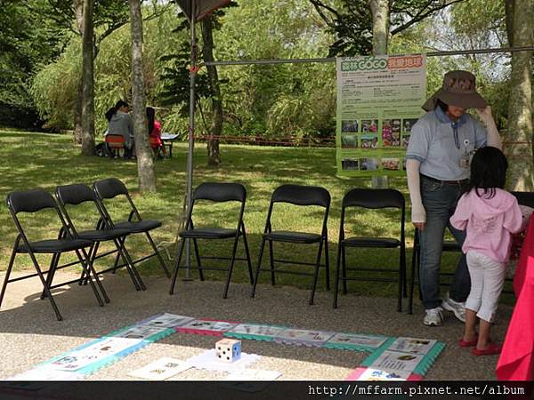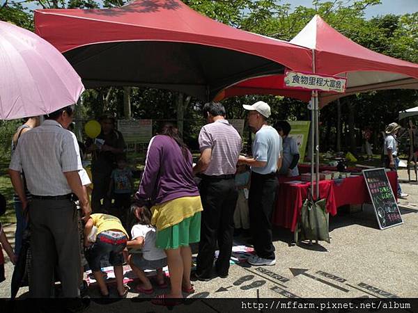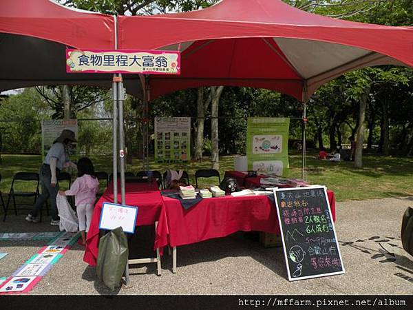 臺大山地實驗農場的闖關活動名稱為「 食物里程大富翁」,為101年參與環保創意教案徵選活動入圍的教案。就是以大富翁的遊戲形式,但主題以食物里程的相關層面來進行。許多大朋友、小朋友加入遊戲後,隨著丟骰子決定了前進的步數移動時,一邊認識了進口食物的食物里程,也在遊戲中理解了在生活中可以實踐的對地球友善的作為,甚至驚訝於原來進口的水果要耗費那麼多的燃料。而讓大眾理解、關心我們的食物安全、農業相關議題,也就是我們這個活動所希望與大家分享的。