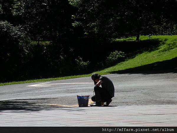 為了來場出入學員的交通安全,工作人員在地面上畫上了特大的箭頭。