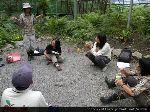 圍蹲在春陽水生植物園區,工作人員們討論著實際活動時的因應與準備。