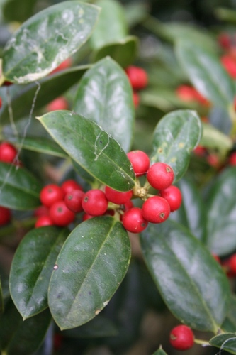有著晶瑩紅果的「英國冬青」。
